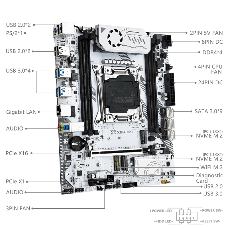 Storage ports: NVME(PCIE 3.0 X4) M.2 x2, SATA3.0 x9