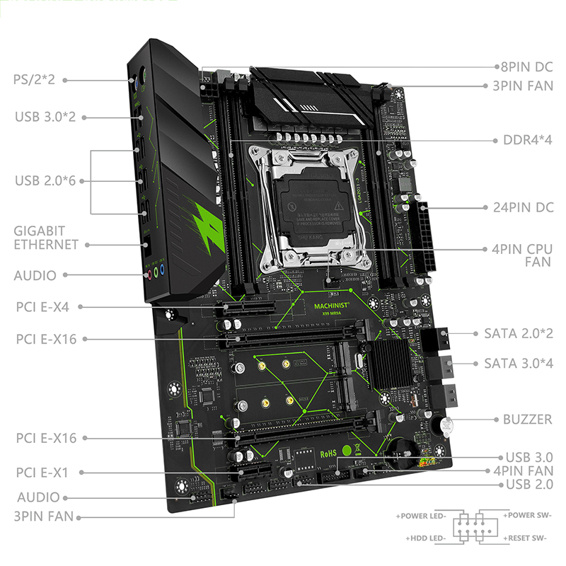 Power supply interface: 8PIN CPU powered x1, 24PIN Motherboard Power Supply x1