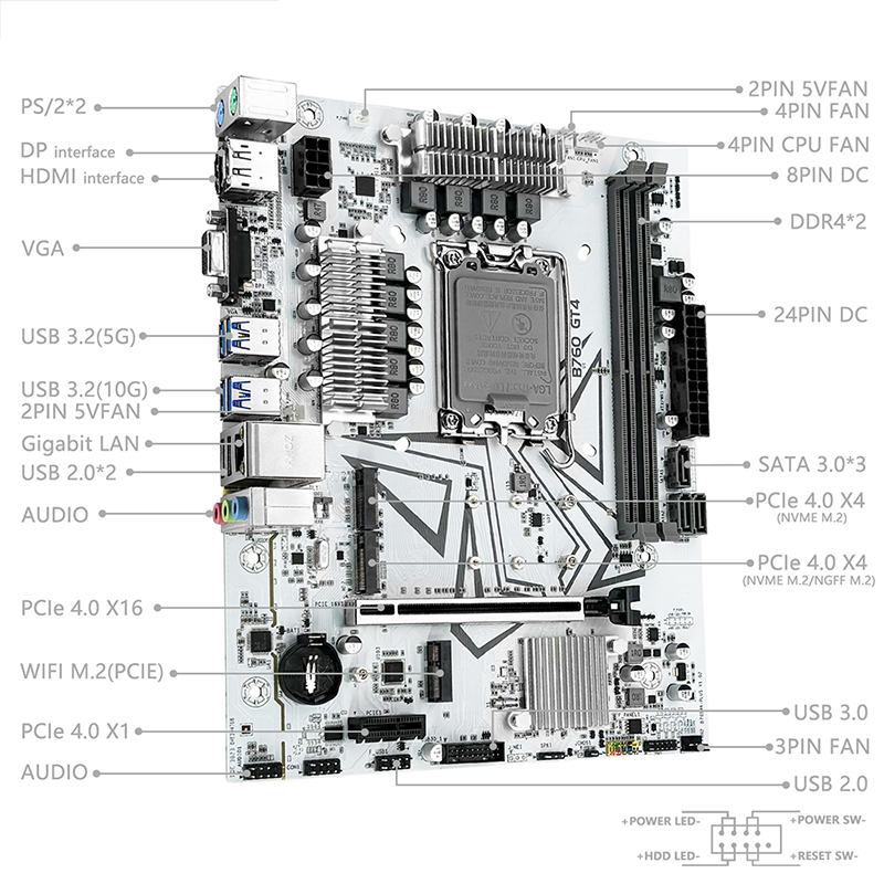 Power supply interface: 8PIN CPU powered x1, 24PIN Motherboard Power Supply x1