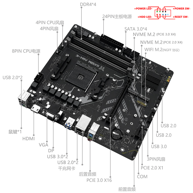 存储接口:(PCIE 3.0 X4)NVME M.2*1 (PCIE 2.0 X4)NVME M.2*1
