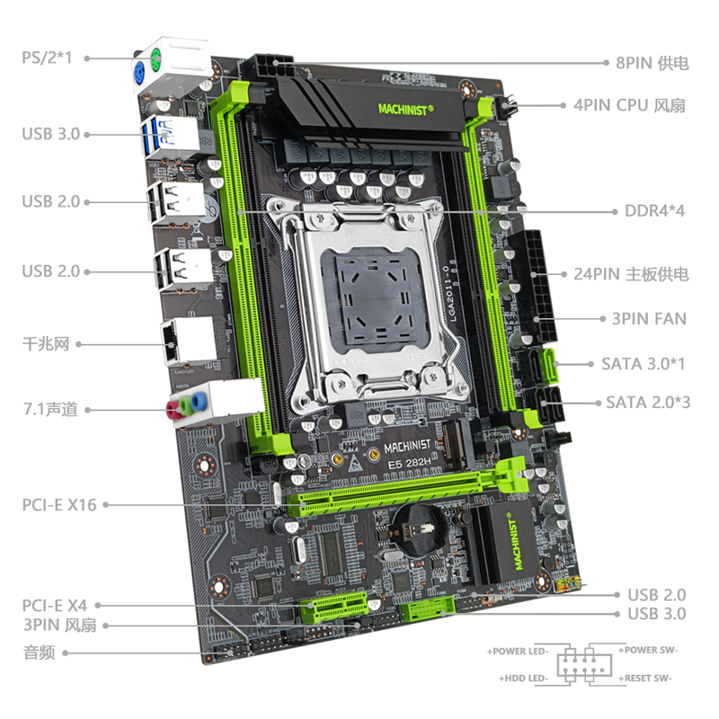 存储接口:NVME M.2与SATA M.2可互换 SATA3.0*1 SATA2.0*3