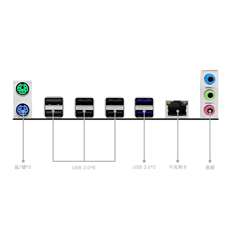 USB接口:后置USB2.0*6 USB3.0*2 前置USB2.0*1/USB3.0*1(2.0速率)