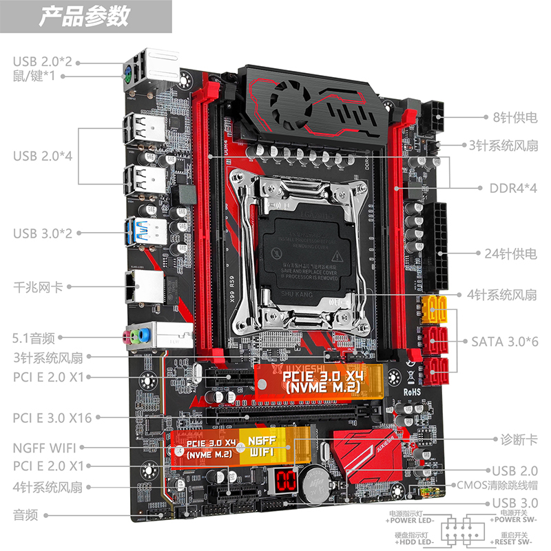 存储接口:2*NVME M.2(PCIE 3.0*4), SATA3.0*6